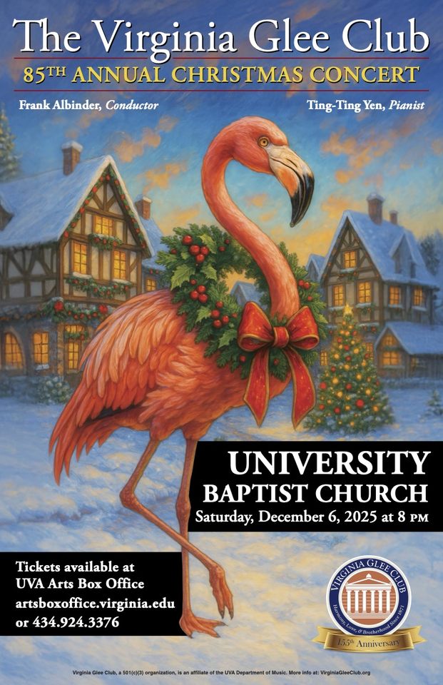 Ring in the holiday season with the Virginia Glee Club as we present our 85th Annual Christmas Concert at University Baptist Church, Saturday, December 6 at 8 PM. Christmas with the Glee Club incorporates both candlelight, comedy, and our favorite holiday classics! Come join in the fun and celebrate the beauty of the holiday season with one of Charlottesville’s oldest and most joyful holiday traditions! We would like to extend a special invitation to all Glee Club alumni to join us in the singing of Ave Maria and Winter Song during our performance!